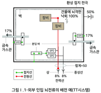 ◦SPD는 전원 등을 통해 유입되는 서지를 대지로 방전시키지만,이는 유도뢰의 원인이 됨